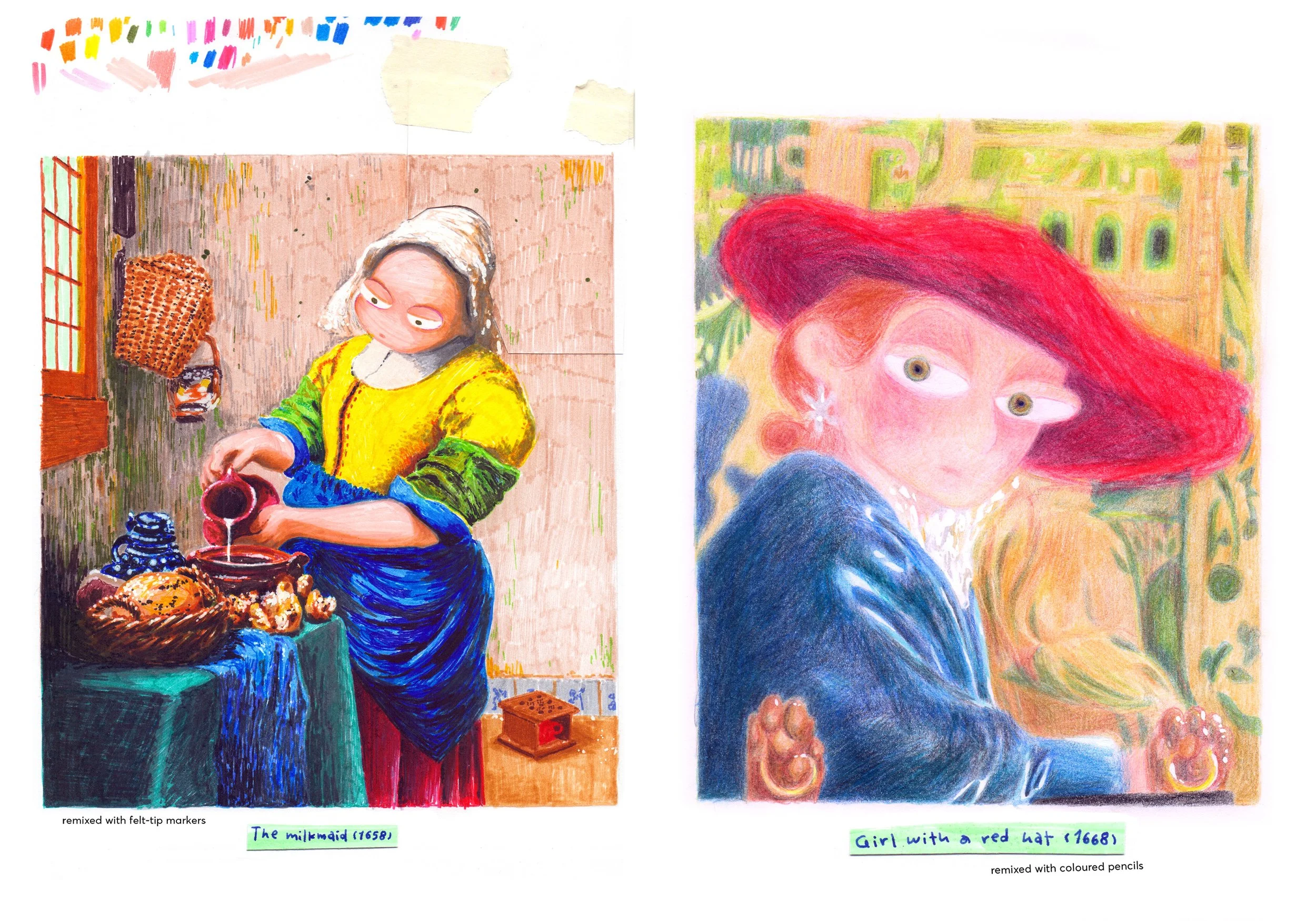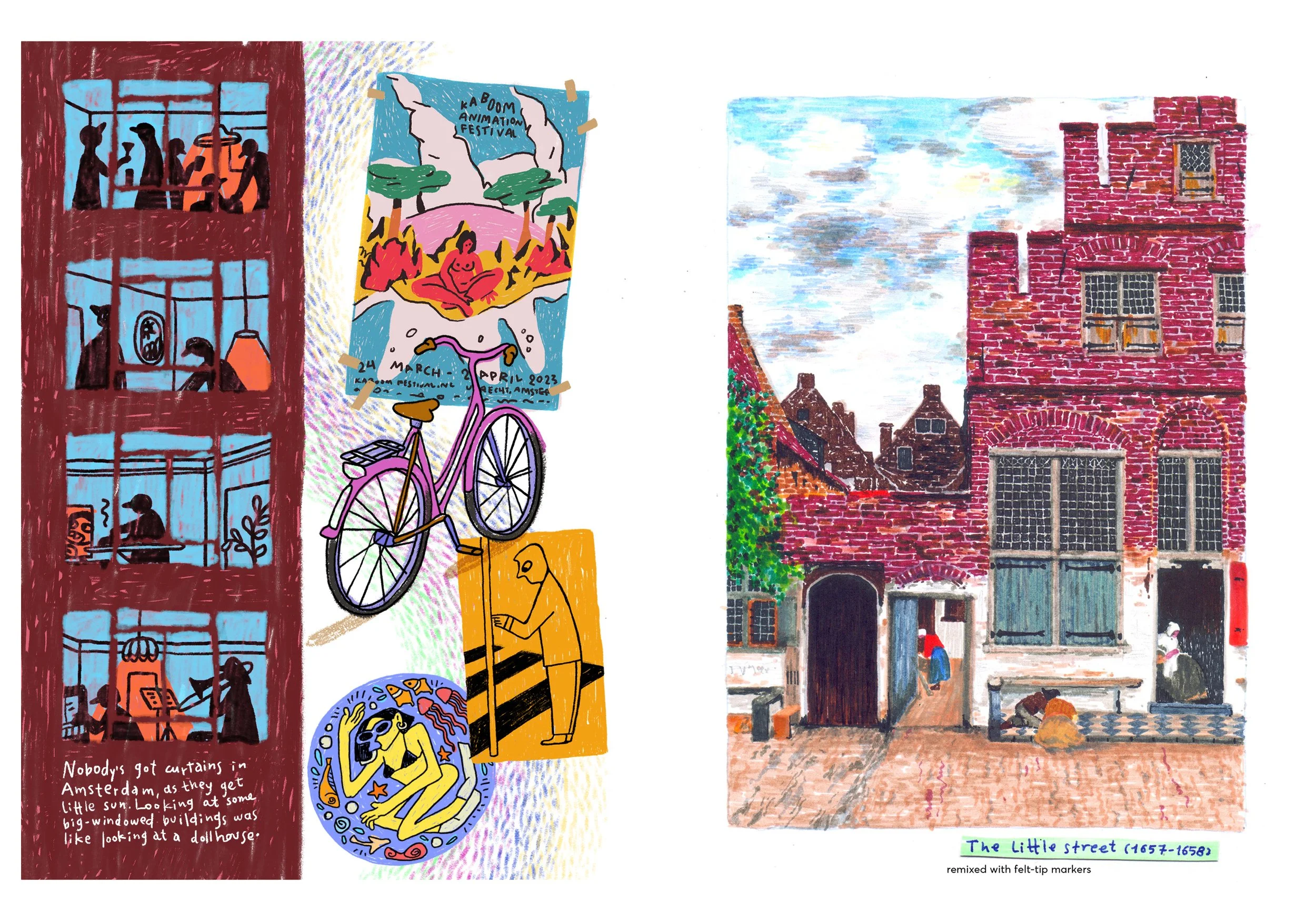 A travel journal and art zine based on my short visit to Amsterdam for the Vermeer Exhibition. I reimagined a selection of the shown paintings with a variety of materials, and incorporated journal-type elements of Amsterdam, documenting my stay there.